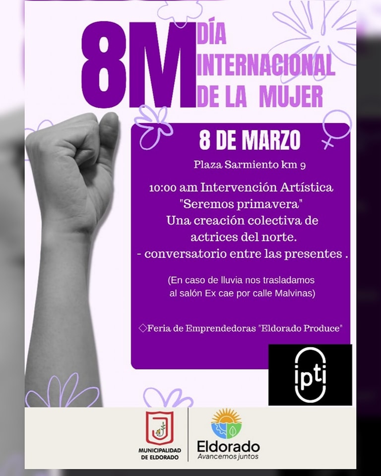 Organizado por la Municipalidad de Eldorado este viernes 8 de marzo se llevará adelante una jornada HOMENAJE A LA MUJER en la Plaza Sarmiento.