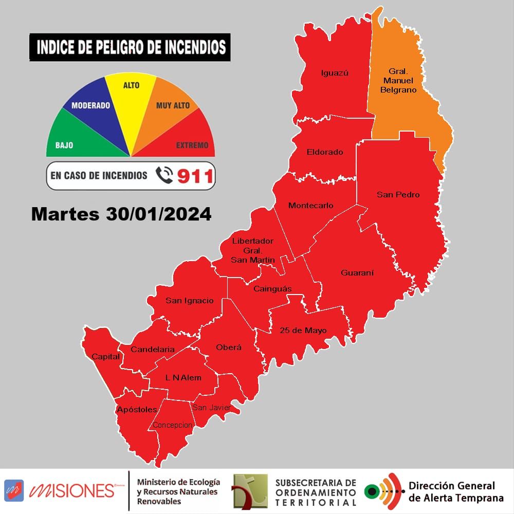La Dirección de Alerta Temprana del Ministerio de Ecología y Recursos Naturales Renovables (RNR) elevó a extremo el nivel de alerta por riesgo de incendios en toda la provincia, con excepción del departamento General Manuel Belgrano, donde es muy alto. Esto significa que el riesgo de que se produzcan incendios forestales es muy alto, especialmente en zonas de pastizales. Las condiciones climáticas actuales, caracterizadas por altas temperaturas y la falta de precipitaciones, han contribuido a aumentar el peligro de incendios. La sequedad del suelo y la vegetación han aumentado la vulnerabilidad de los ecosistemas a los focos ígneos. Por ello, es importante tomar medidas para prevenir los incendios forestales con las siguientes recomendaciones: