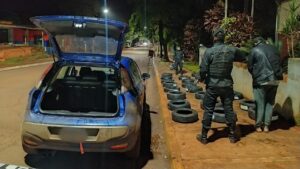 Así mismo, continuando con los trabajos preventivos nocturnos, personal de la División Motorizada sobre la avenida Fundador del Km. 3, realizaron un seguimiento a un vehículo que circulaba a gran velocidad, quien intentó huir, y tras recorrer varias cuadras, lograron que el conductor detenga la marcha, donde fue demorado preventivamente, luego se constató que en interior del rodado trasportaba 23 cubiertas de origen extranjero, sin el aval aduanero correspondiente, por lo cual acorde los temperamentos dispuesto por la Delegación de Aduanas de Puerto Iguazú fue secuestrado de la carga.
