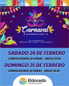 Tras la suspensión del viernes -por razones climáticas, este sábado 24 y domingo 25 de febrero, la Costanera volverá a transformarse en el corsódromo de la ciudad para compartir los Carnavales de Eldorado 2024, a partir de las 20 horas.