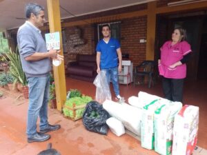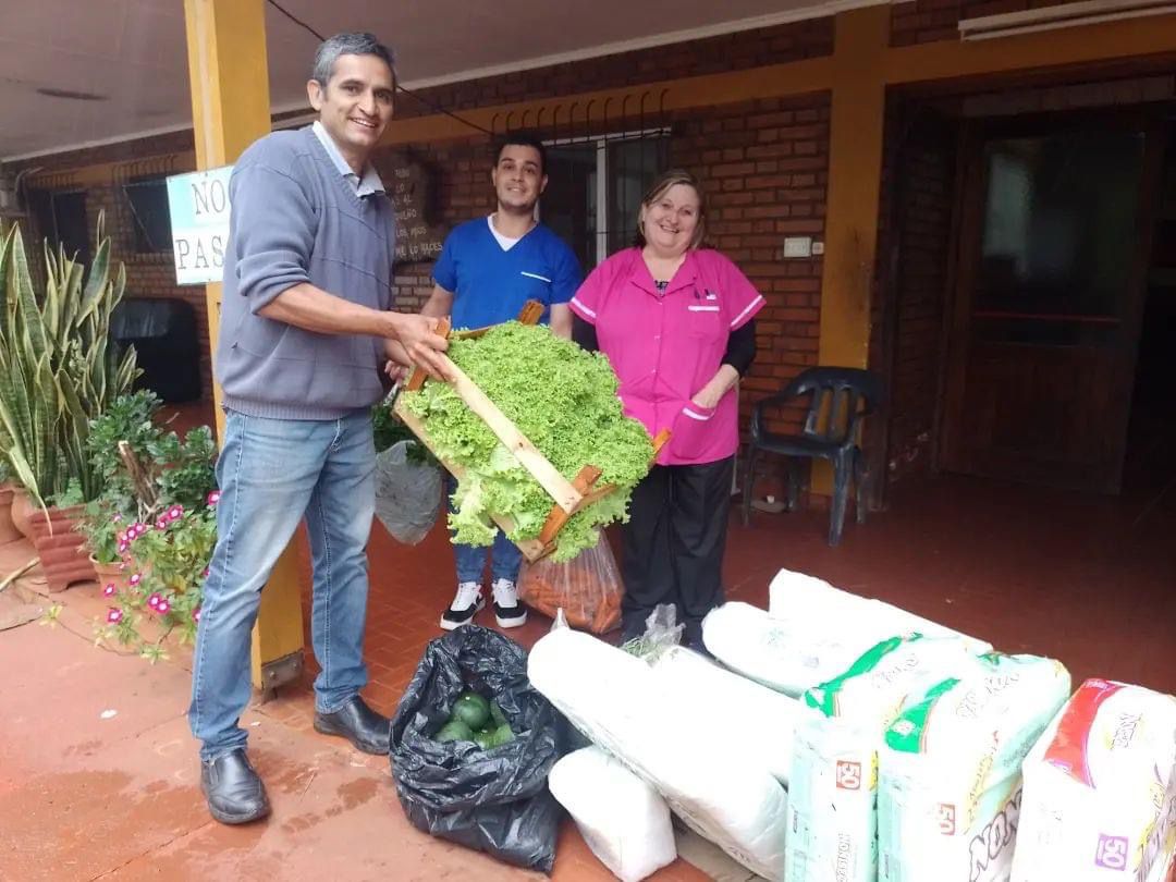 En una visita encabezada por el coordinador del Mercado Concentrador Zonal (MZC) de Eldorado, Hugo Núñez, al Hogar de Ancianos Santa Marta se realizó la entrega de productos de las chacras de la región, así como varias bolsas de pañales para fortalecer la alimentación y bienestar de los adultos mayores que allí residen.