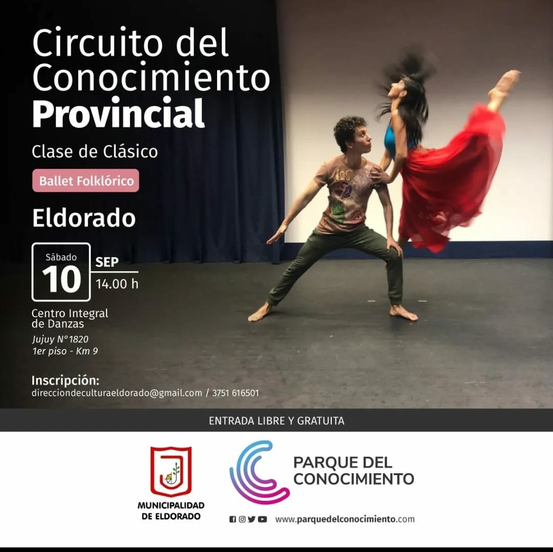 En un trabajo conjunto entre la Municipalidad de Eldorado, y el Gobierno de la Provincia de Misiones, este sábado, 10 de septiembre, llega a la ciudad el “Circuito del Conocimiento” para capacitar a bailarines locales.
