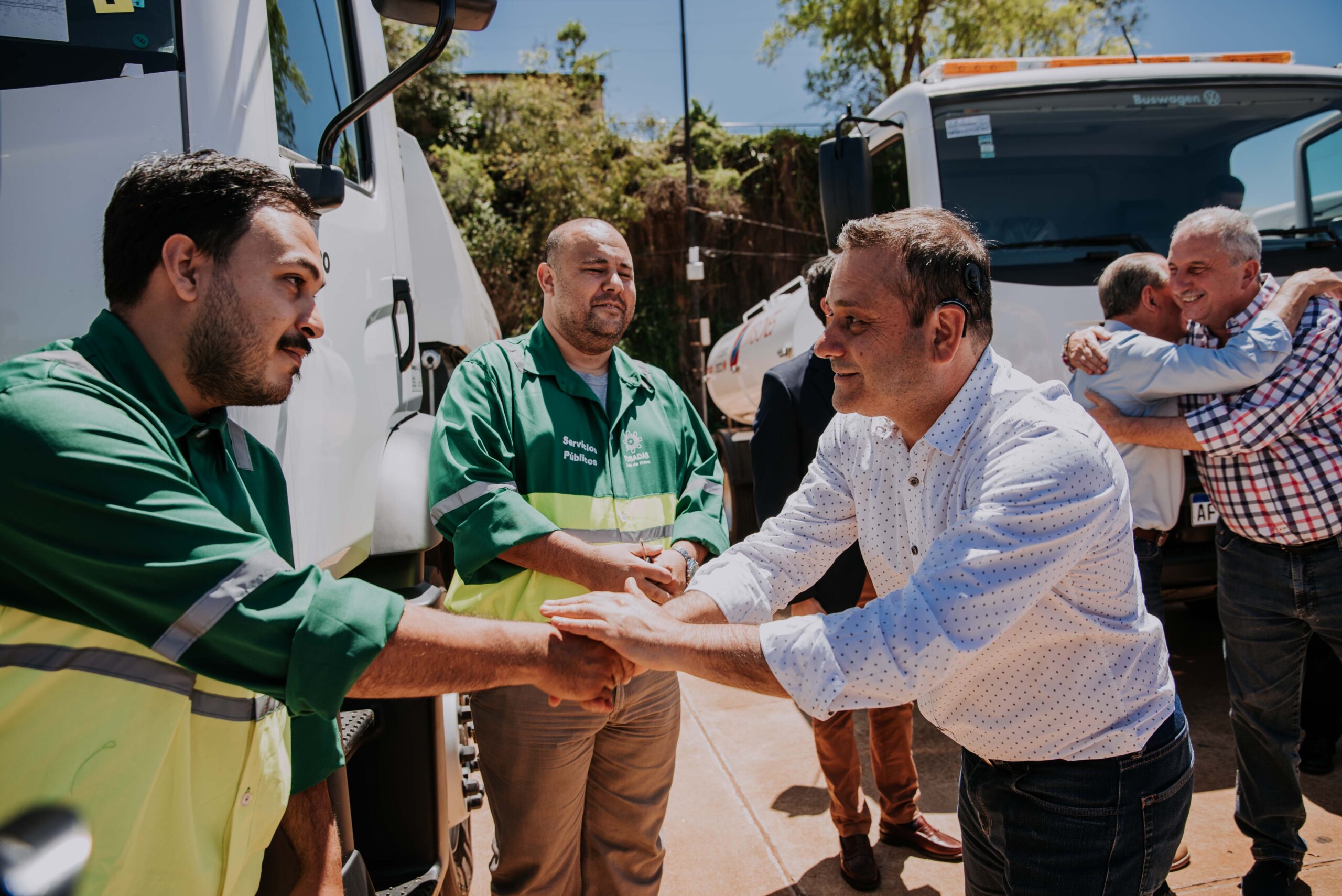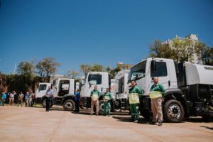 Posadas recibió hoy cinco camiones, uno para residuos patológicos, dos lavacontenedores y dos barredoras. En tanto se entregaron cuatro camiones compactadores al interior, entre los municipios beneficiados con estas unidades figuran Apóstoles, Dos de Mayo, Garuhapé y San Antonio. Los dos camiones volcadores tendrán como destino los municipios de Garupá y Campo Ramón. Por último, se entregaron tres tanques regadores, uno al área de Defensa Civil del Ministerio de Gobierno y los otros serán destinados a las comunas de Santa María y Puerto Rico.