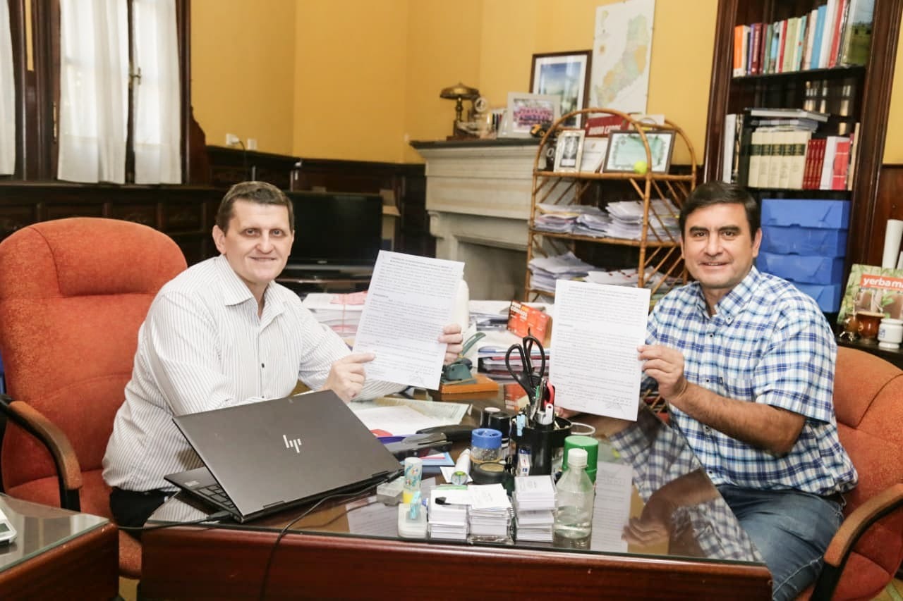 El intendente de Eldorado, Fabio Martínez, y el Ministro de Hacienda de Misiones, Adolfo Safrán, firmaron el convenio de adhesión del municipio al programa «Ahora Taxi». Se trata de una herramienta impulsada por el Gobierno de Misiones que tiene como objetivo a acompañar al sector en la renovación de unidades. El programa subsidia hasta el 50% del valor de un vehículo Fiat Cronos con el compromiso de la concesionaria de tomar el vehículo usado como parte de pago.