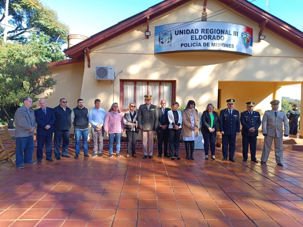 Autoridades e integrantes de las distintas unidades y comisarías que conforman la Unidad Regional III se acercaron al lugar para formar parte del acto, así como representantes de las distintas fuerzas de seguridad que tienen base en Eldorado.