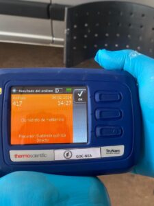 Para la inspección, contaban con la perra antinarcóticos llamada Oma, traída especialmente para la ocasión, ya que según la información recolectada, la droga podría venir oculta en envases fácilmente reconocibles para un can con su entrenamiento. En efecto, al olfatear la carga del camión, el animal reaccionó exaltadamente frente a seis bidones que contenían una sustancia líquida. Esto corroboraba las sospechas de la existencia de estupefaciente, las cuales fueron finalmente confirmadas tras el uso del dispositivo portátil Thermo Scientific Trunarc, que determinó que se trataba de 40 litros de ketamina y 20 litros de clorhidrato de metilamina.