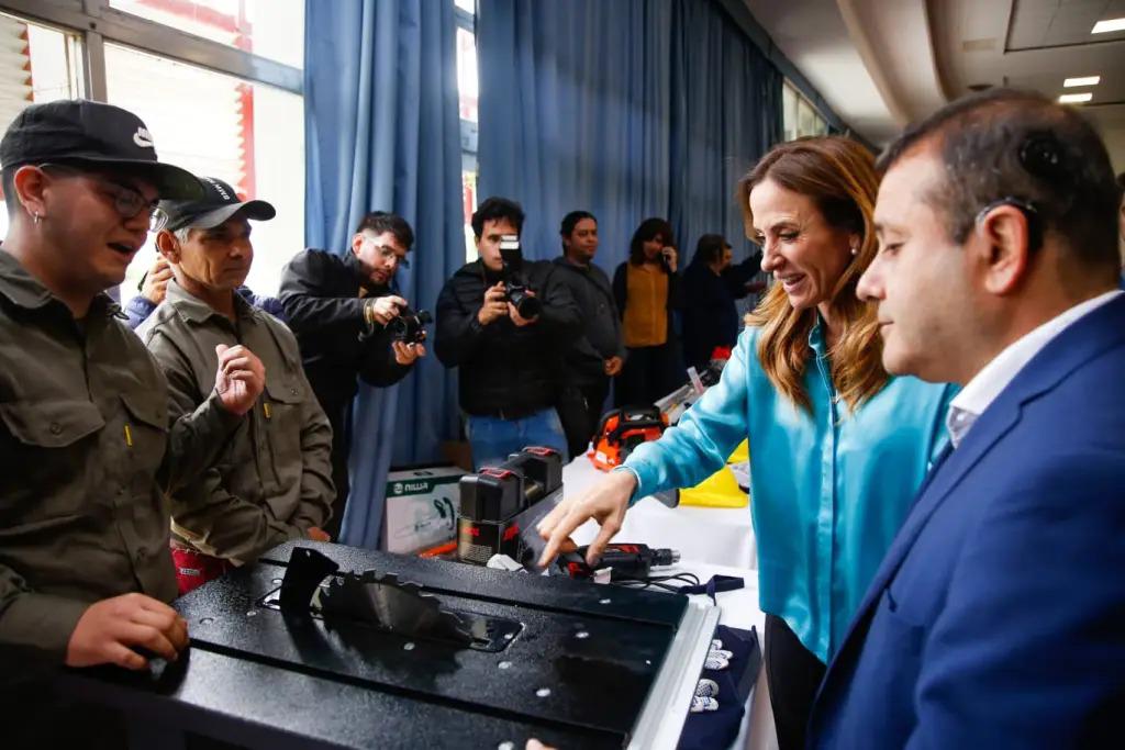 Luego, la comitiva se dirigió al Parque del Conocimiento para entregar herramientas de trabajo a 36 emprendedores, y certificados a 90 personas que realizaron diplomaturas en el marco del programa Potenciar Trabajo.