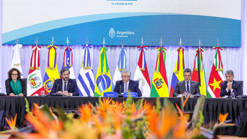 Apuntan a una política de integración profunda y gestiones para concretar la alianza con la Unión Europea. Fernández otorgó la presidencia temporal a Lula Da Silva.