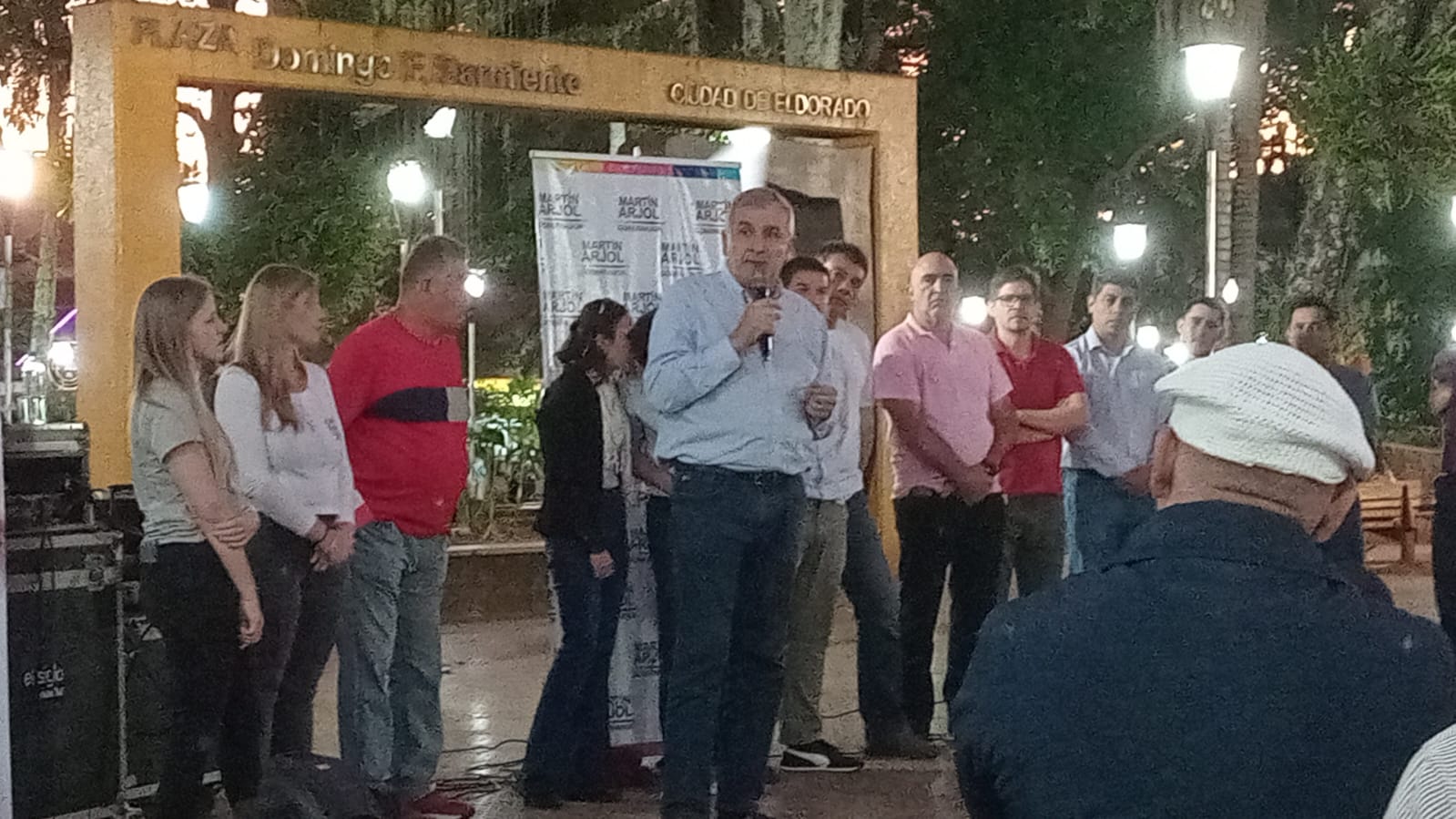 En su alocución en Eldorado cuestionó al Frente Renovador “que gobierna esta provincia hace 20 años. Es hora del cambio, de una provincia nueva como hicimos nosotros en Jujuy tras habernos hecho cargo del gobierno en 2015”.