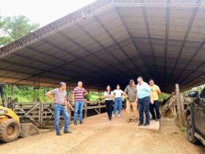 El Presidente del IFAI, Roque Gervasoni, junto a integrantes del equipo de trabajo -y al administrador del Mercado Concentrador Zonal Eldorado, Hugo Núñez, visitaron La Estancia «La Emilia» y «Don Guillermo» de la familia Gruber, que se dedican a la producción de carne bovino feedlot (sistema intensivo de producción de carne en el cual se alimenta al ganado en corrales, donde a través de comederos reciben una dieta determinada) y porcino, con producción de alimentos propios para los animales.