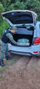 Luego de pesquisas efectuadas por efectivos de la Sección “Jardín América” dependiente del Escuadrón 11 “San Ignacio” de GNA, los uniformados detectaron un posible tráfico de estupefacientes que se transportaría en un rodado en la localidad de General Urquiza. En ese lugar, visualizaron a un vehículo con características similares al automóvil buscado. Se trataba de un Chevrolet Traker, cuyo conductor, al notar la presencia del personal de la fuerza, abandonó el rodado y se internó en la zona del monte.