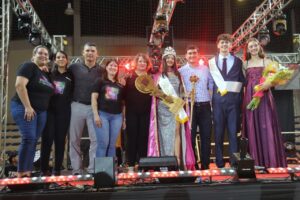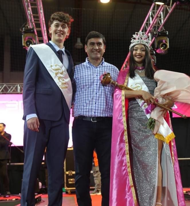 La colorida fiesta de entrega de premios en el marco de las Olimpiadas Estidiantiles desarrollada en el Polideportivo Municipal Universitario, culminó con la coronación de los nuevos soberanos: Iara (Instituto San Francisco de Asís) y Juan Martín (Instituto Hindenburg); secundados por 1a Princesa Fiona Niederberger Warenycia – Instituto San Francisco de Asís