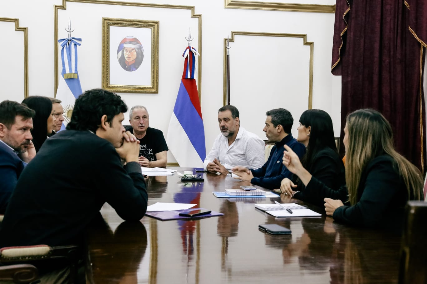 Participaron de la reunión el ministro de Salud Pública, Héctor González; el ministro de Educación, Ramiro Aranda; el ministro de Prevención de Adicciones y Control de Drogas, Samuel López; el ministro de Gobierno, Marcelo Pérez; la directora del CGE, Daniela López; el presidente del IPS, Lisandro Benmaor; la jefa de Dpto de Salud mental del IPS, Constanza Logegaray; la responsable del área del Gabinete Psicológico de Vicegobernación, Mariel Orihuela; entre otros miembros de la Red Provincial de Prevención del Suicidio.