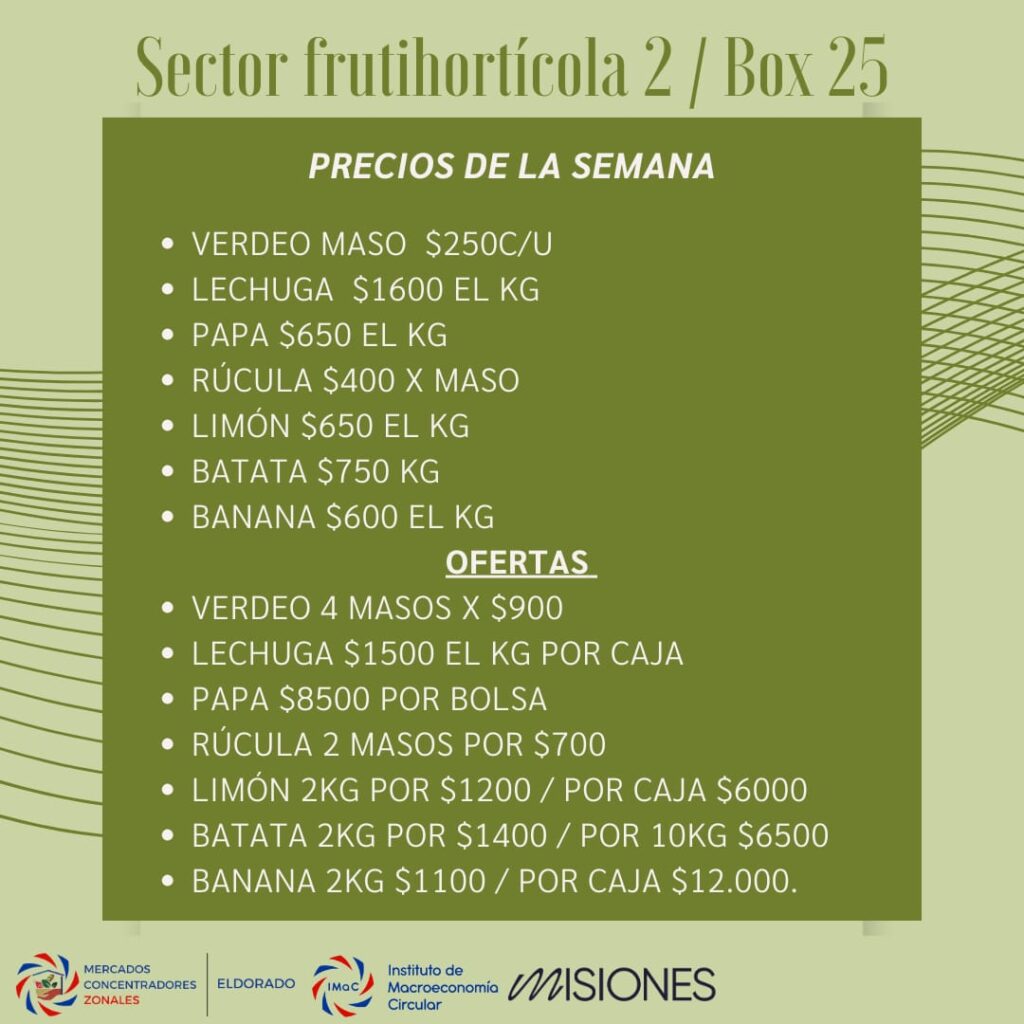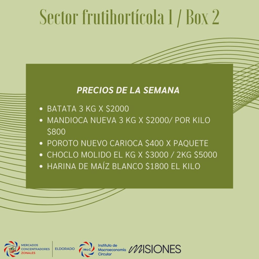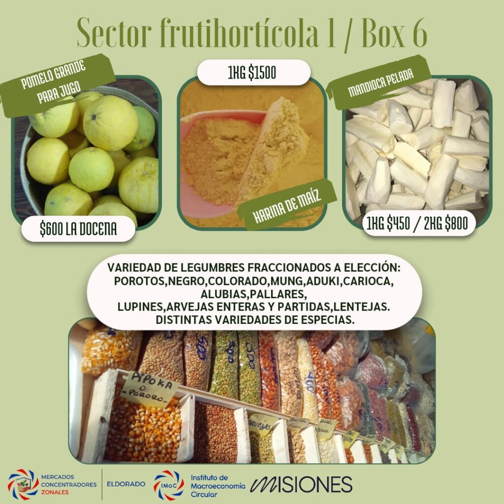 El Mercado Concentrador de Eldorado funcionará de miércoles a sábado de 07:00 a 13:00hs. Cuenta con sectores Frutihorticola, Valor Agregado; Carnes y Lácteos y Artesanías. Comercializan allí más de 50 productores.