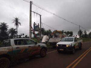 La alineación de postes en la línea de 13,2 kV, ubicada en la ruta 3 hacia Cerro Corá, es una medida preventiva para garantizar la integridad de la infraestructura y minimizar riesgos, fortaleciendo la red eléctrica ante eventos climáticos.