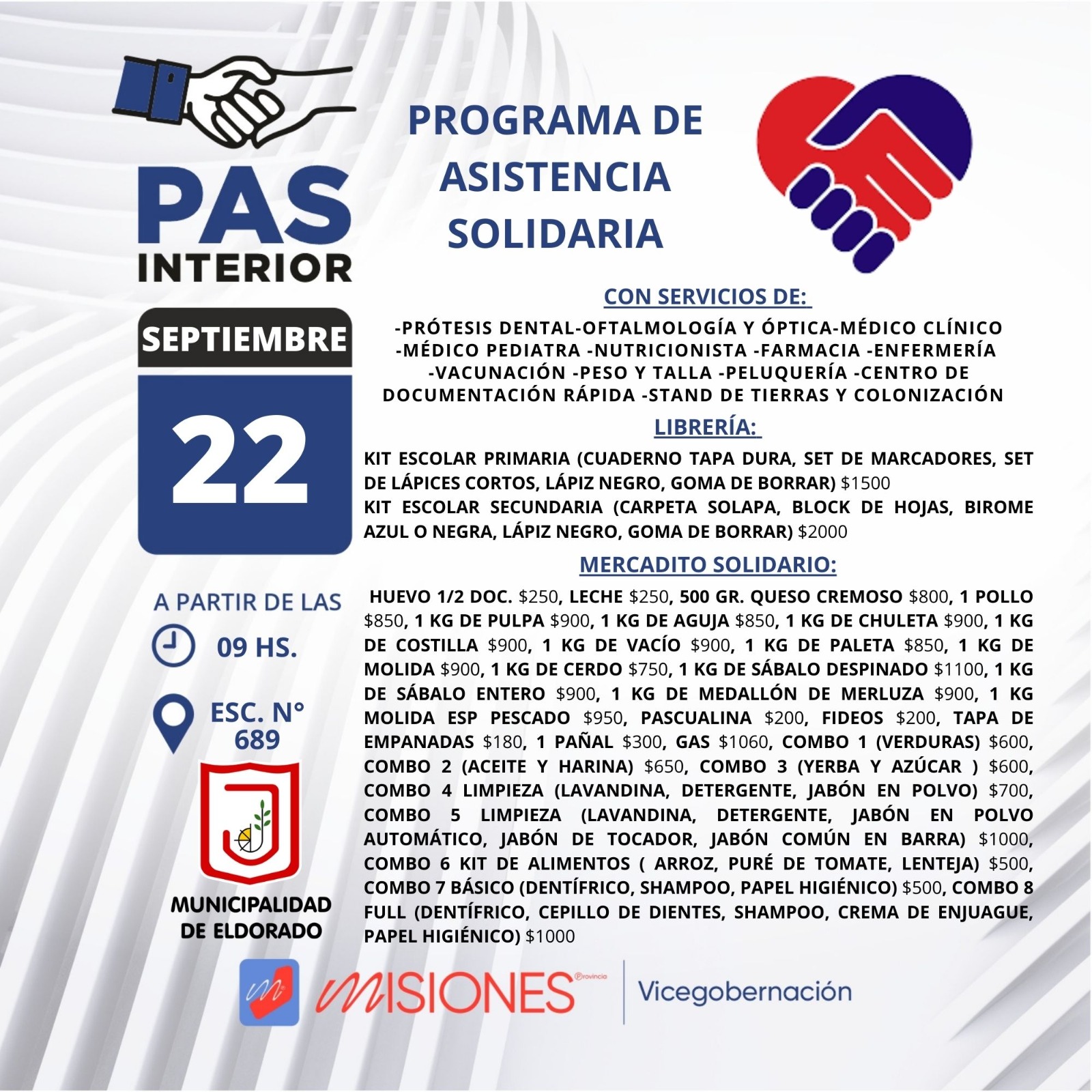 Este viernes, 22 de septiembre, se lleva adelante un nuevo operativo en la Escuela N°689 (calle Chile, km 5) de manera conjunta entre la Municipalidad de Eldorado y la vicegobernación de la provincia de Misiones, a partir de las 9 horas.
