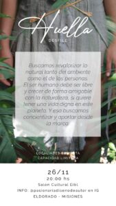 Organizado por diferentes representantes artísticos y gestores culturales, PASIONARIA presenta «HUELLAS», cuya temática es la “deforestación” que sufrimos en nuestra provincia y en el planeta.