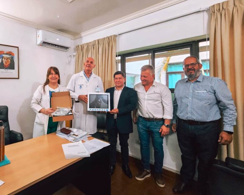 El titular de la cartera sanitaria provincial, Dr. Oscar Alarcón junto al Subsecretario de Atención Primaria y Salud Ambiental, Dr. Danielo Román Silva, hicieron entrega de las certificaciones e insumos para los centros de atención primaria al Intendente, Carlos Koth. También se entregó al director del Hospital, Dr. Joel Cibils un monitor multiparamétrico.