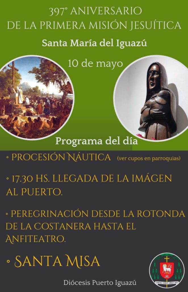 La Diócesis de Puerto Iguazú ha anunciado la celebración de la peregrinación náutica de Santa María del Yguazú el próximo 10 de mayo, con motivo de conmemorar los 397 años de la primera misión jesuita a las Cataratas.