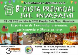 Cuenta regresiva para la realización de la 8va. edición de la Fiesta Provincial del Envasado, la que se llevará a cabo los días 21, 22 y 23 de julio en el Parador 3 de Mayo, ciudad de Garuhapé.