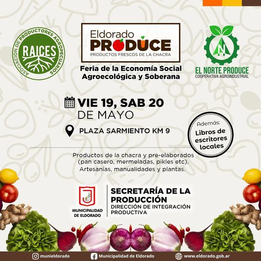 Este viernes 19 y sábado 20 de mayo nos volvemos a encontrar en la Plaza Sarmiento con la Feria «Eldorado Produce».