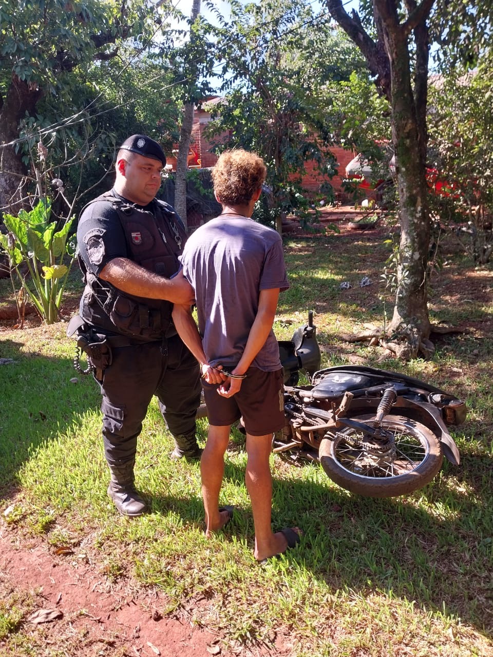 Finalmente, en el barrio Giachino de Eldorado, Ignacio de 19 años, intentó huir con una motocicleta que carecía de documentaciones, pero al realizar una brusca maniobra se precipita al suelo y el detenido.