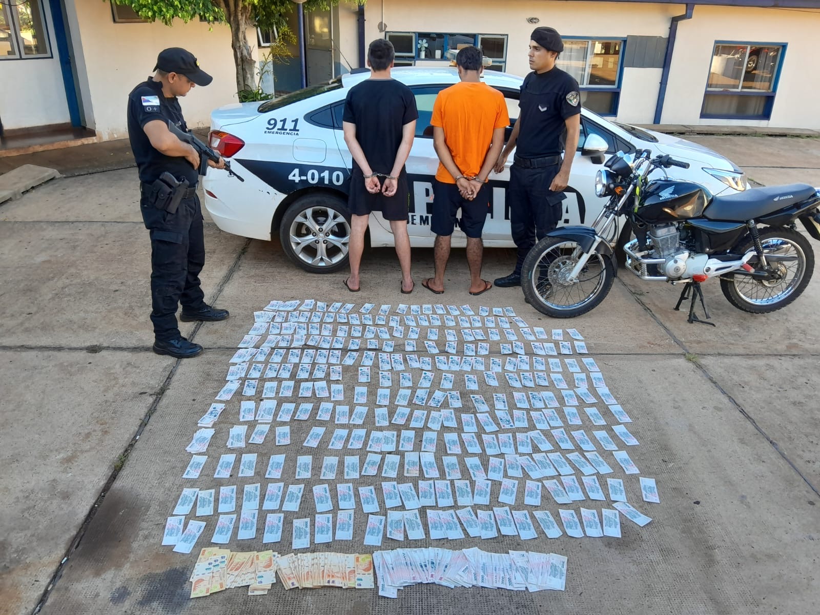 Por otra parte, efectivos de la Comisaría Tercera detuvieron a dos jóvenes oriundos de la localidad de Dos Hermanas, quienes se desplazaban en una moto de 150 cc. que no contaba con ningún tipo de documentaciones, además no pudieron justificar una suma millonaria de efectivo que transportaban.