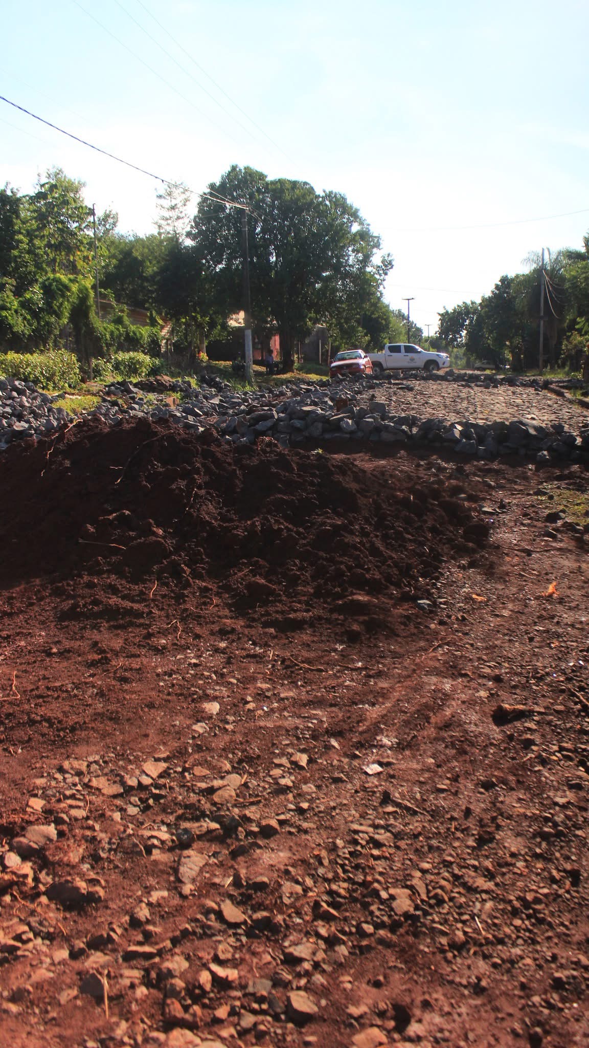 La Secretaría de Obras y Servicios Públicos de la Municipalidad de Eldorado avanza con los trabajos de empedrado sobre la calle Mariscal Estigarribia del barrio 20 de Junio.