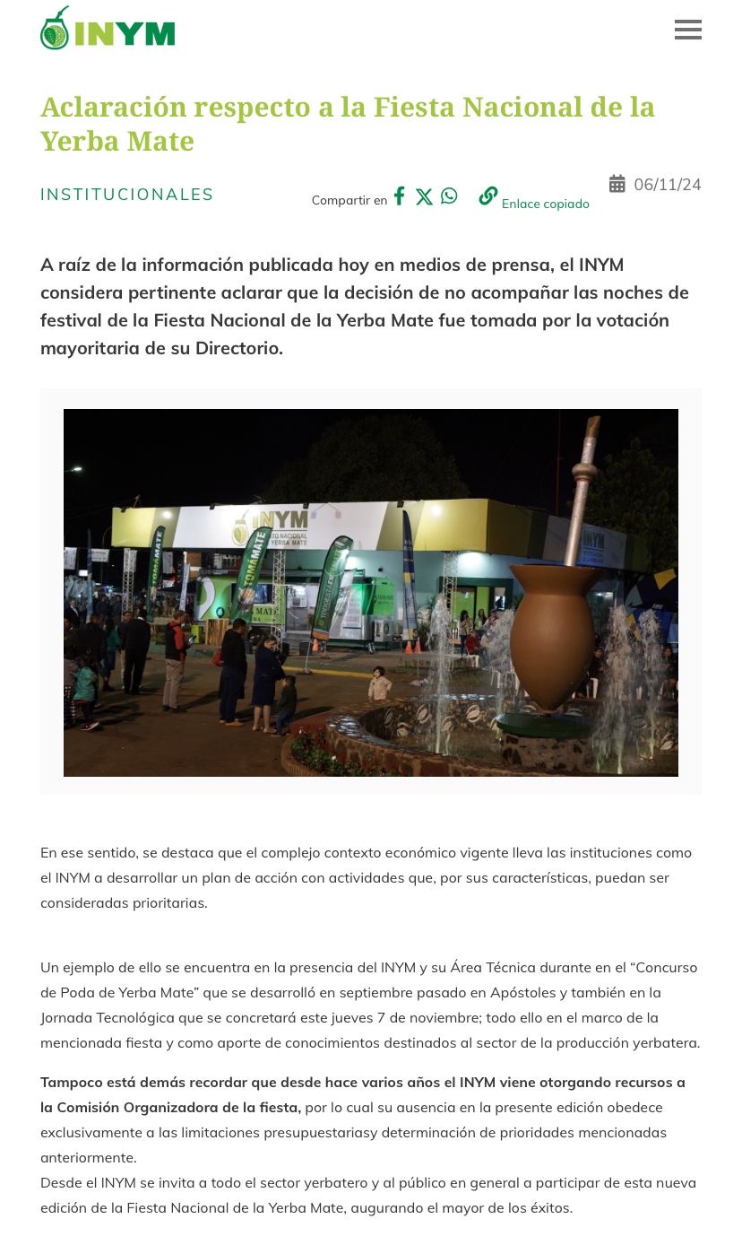 La situación del organismo se ve reflejada en la decisión de no participar activamente en la Fiesta Nacional de la Yerba Mate, uno de los eventos más importantes para la promoción y presencia del instituto. Este anuncio simboliza el deterioro de una entidad que no cuenta con el apoyo necesario para ejecutar maniobras ni para defender su propio presupuesto y funcionamiento.