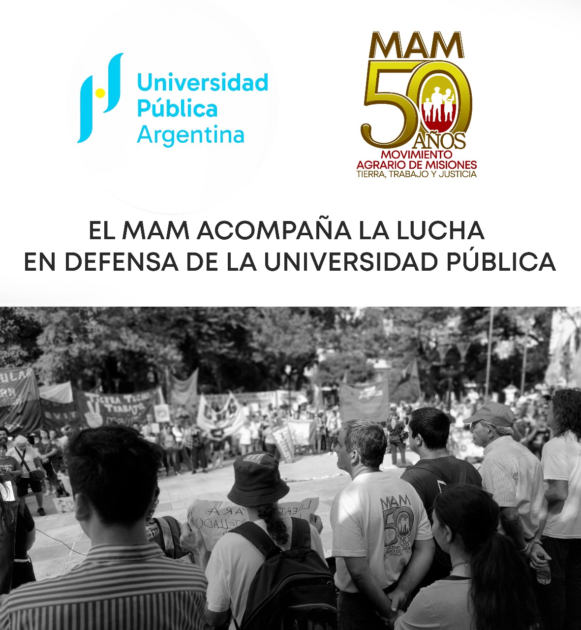Desde el Movimiento Agrario de Misiones (MAM) manifestaron el pleno apoyo y acompañamiento a la Marcha Universitaria Nacional que se desarrolló ayer en todo el país.