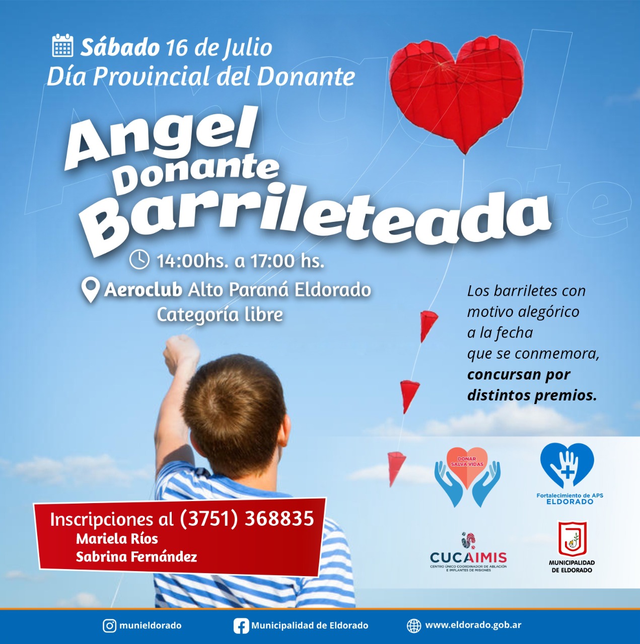 El próximo 16 de Julio, en el Aeroclub Alto Paraná de Eldorado, a partir de las 14 horas se realizará una barrileteada en conmemoración al día Provincial del Donante de Órganos.