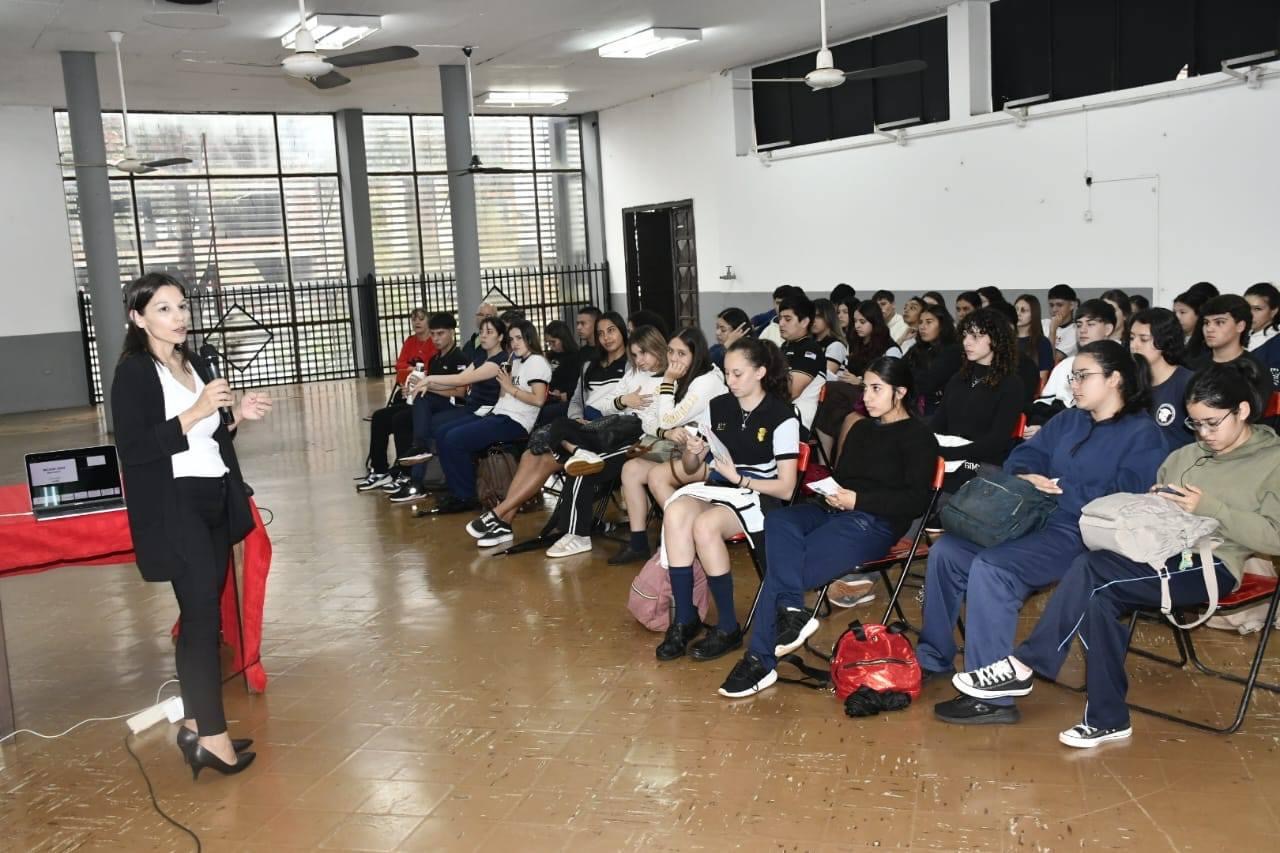 Luego de la firma, la encargada del Polo Académico Eldorado, Cintia Talavera, acompañó a la rectora a la Expo INCADE, que tuvo lugar en el Salón Ex CAE, donde se llevaron a cabo charlas sobre Marketing y Publicidad Digital, así como Gestión y Transformación Digital de Empresas. Este evento contó con la participación de estudiantes secundarios de distintas instituciones.