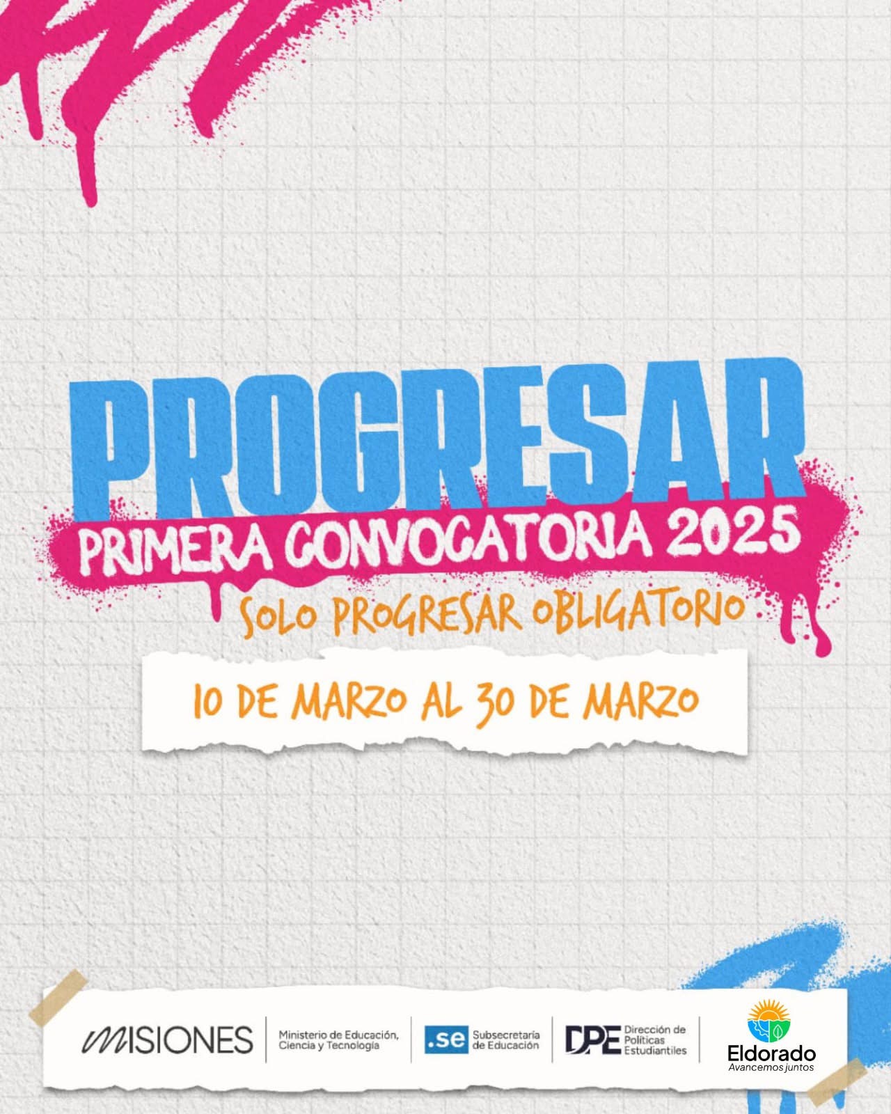 El Polo Académico de la Municipalidad de Eldorado informa que hasta el 30 de marzo estará abierta la inscripción a la Primera Convocatoria 2025 de las Becas Progresar.