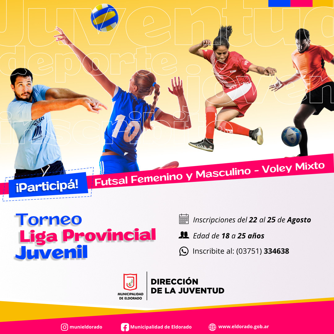Desde la Dirección de la Juventud de la Municipalidad de Eldorado se invita a los jóvenes de entre 18 y 25 años a sumarse al Torneo “Liga Provincial Juvenil”.