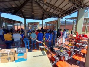 Un tractor de 58 HP 4 x 4, un roto cultivador armador de canteros de 2,10 mts, 5 carpidoras moto cultivadoras, 8 tanques de 2.500 litros, 16 tanques de 1.000 litros, 6 motosierras, 2 moto guadañas, 2 hoyadoras, cinta de riego por goteo, 2 gazebos de caño estructural de 4×4 mts.,4 motobombas, 29 rollos de media sombra, 29 rollos de plásticos de 8 x 50 mts, para invernaderos, 100 mts x 7 de ancho de membrana para reservorios de agua, fumigadoras, conectores de riego, tejidos de alambre, entre otros.
