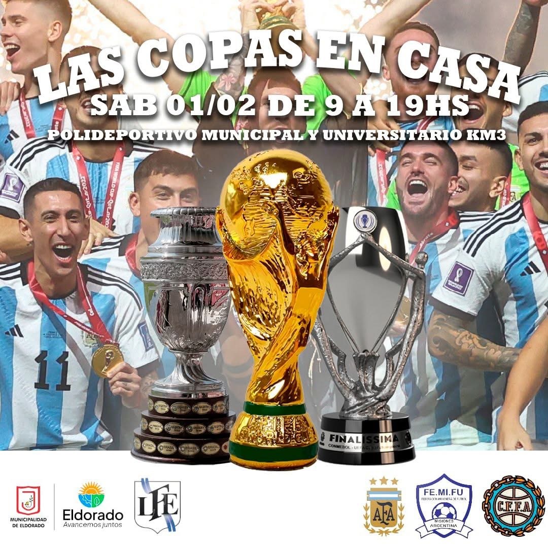 La Municipalidad de Eldorado en colaboración con la Liga de Fútbol de Eldorado invitan a toda la comunidad a la exhibición de las copas de la selección argentina de fútbol.