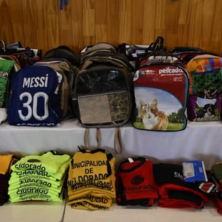 Bolsos eco-materos y delantales con banners reciclados; Eco-cuchas para mascotas fabricadas con residuos textiles, Eco-botineros y canilleras hechas con tetrapack, eco-pañales reutilizables confeccionados con telas de paraguas, Mochilas con kits escolares, Eco-bolsos y envoltorios con plásticos fusionados, Eco-ladrillos y botiquines, Conjuntos polares para el invierno, Juegos didácticos sensoriales donados a escuelas, Camisetas para clubes de barrio, todos donados a los espacios que más lo necesitan.