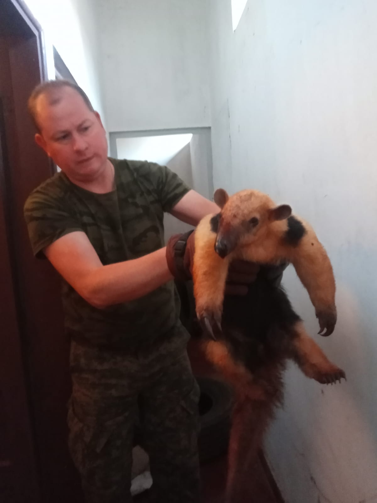 Cerca de las 23 horas, efectivos policiales realizaban recorridas rurales, cuando avistaron al animal, cuyo nombre científico es “Mymercophaga Tridactyla”, el mismo se encontraba caminando desorientado con una lesión en su hocico, presentando un alto riesgo para su vida en razón que la zona es muy oscura y los vehículos transitas a gran velocidad.