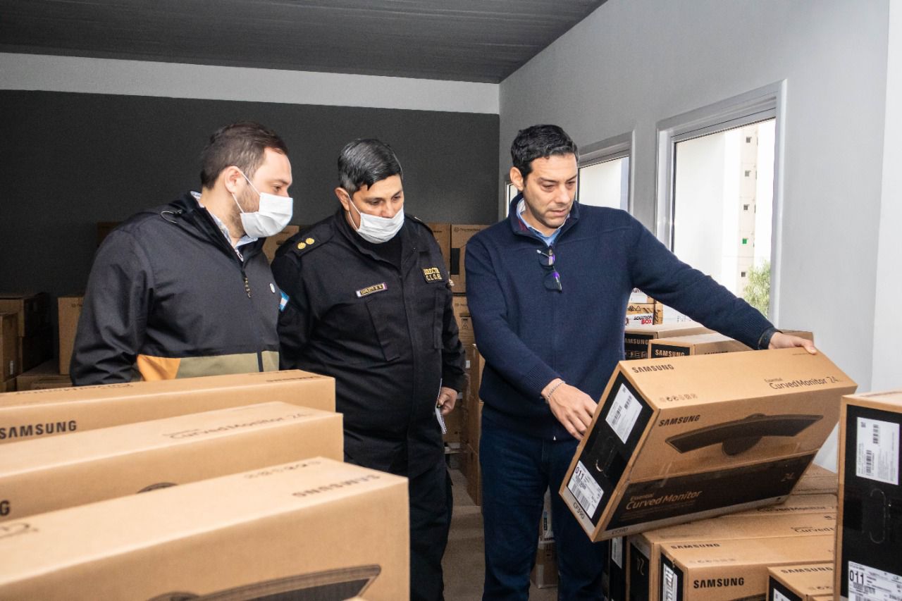 Ya están los monitores curvos, los equipos informáticos, un moderno software e insumos de última generación que serán instalados próximamente en el nuevo edificio del CIO 911, cuya obra está en etapa de finalización