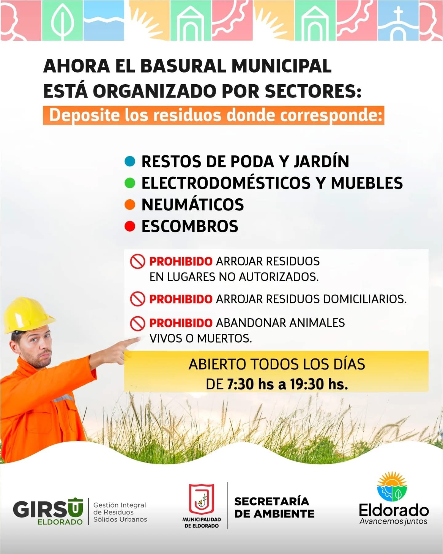 Para garantizar una mejor gestión en el Basural Municipal los residuos deben depositarse en los sectores correspondientes: