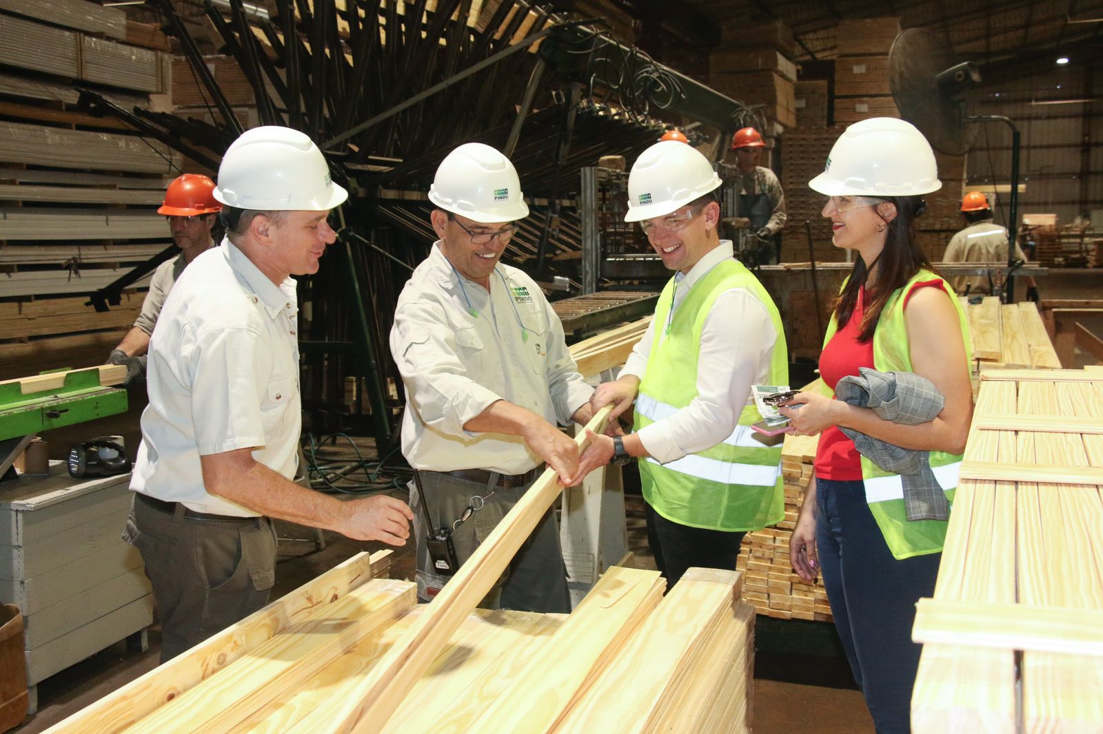 Romero Spinelli visitó luego el aserradero certificado PEFC que Pindó opera y que posee una capacidad de producción mensual de más de 8.000 metros cúbicos, para lo cual recorrió la nueva Línea Mendes, con tecnología avanzada hacia la industria 4.0 y cámaras de secado de última generación que aseguran la calidad del producto final.