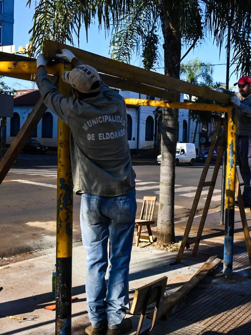 La Municipalidad de Eldorado informa que se ha instalado un refugio peatonal provisorio sobre la Avenida San Martín, entre las calles Iguazú y Mensú.