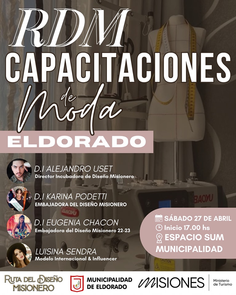 Las capacitaciones son de carácter libres y gratuitas y abiertas a diseñadores, emprendedores de moda, confeccionistas, modistas, modelos y afines al rubro moda de la ciudad de Eldorado y todas las localidades aledañas.