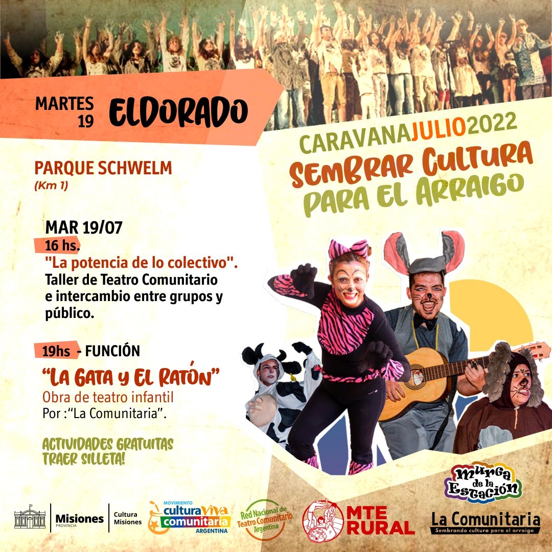 La reconocida compañía cultural “La comunitaria” se presenta hoy en Eldorado, tras haber pasado en Posadas y el miércoles próximo lo hará en Puerto Libertad.