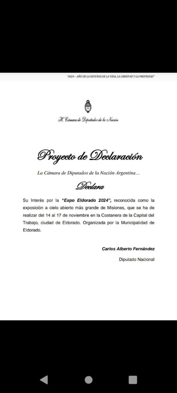 En la Cámara de Diputados de la Nación, se presentó un proyecto para declarar de interés a la Expo Eldorado, un evento emblemático que destaca la riqueza productiva, cultural y comercial de nuestra ciudad y la región.